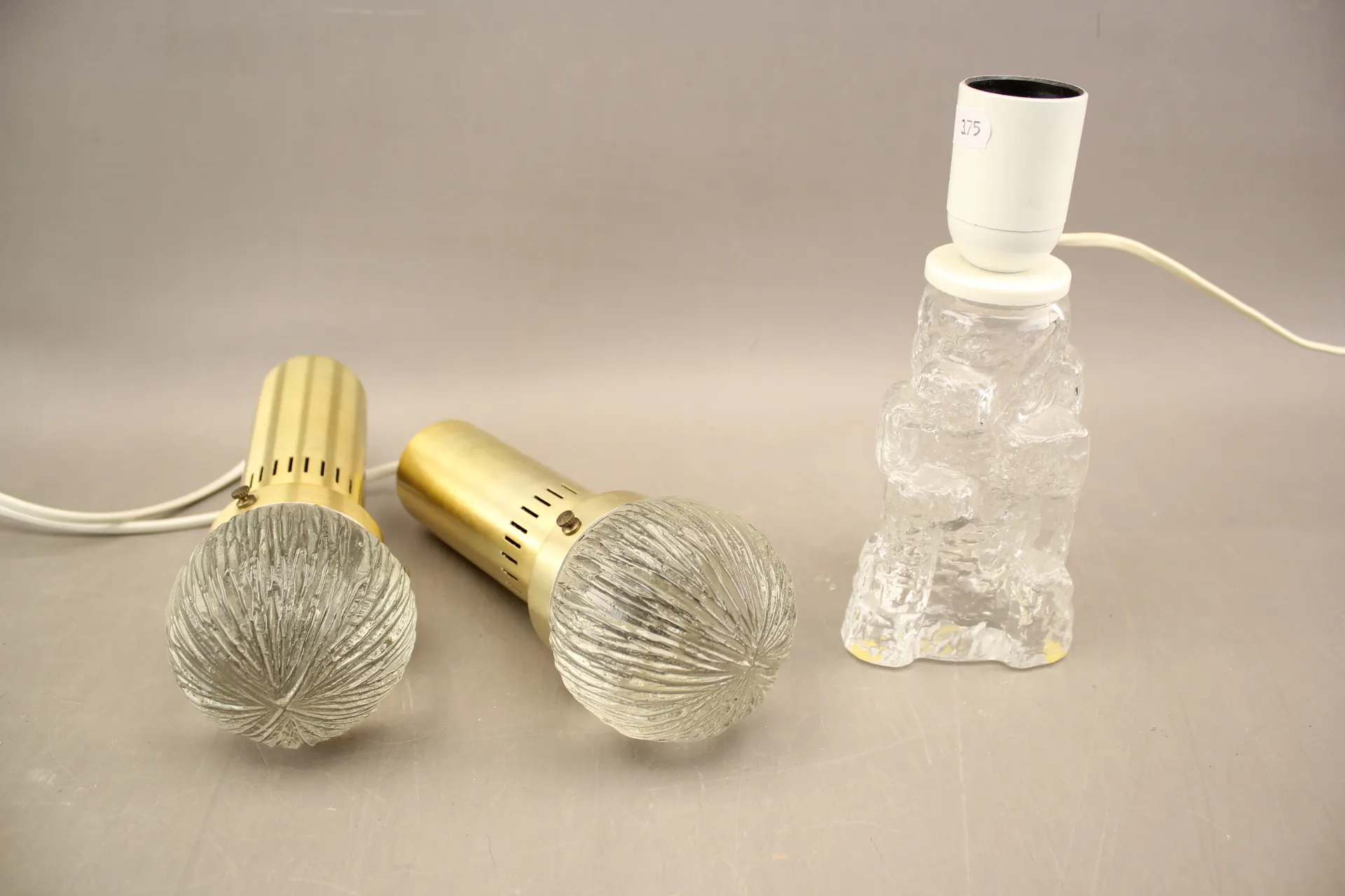 375. Fönsterbelysningar i glas och metall 1 par och bordslampa