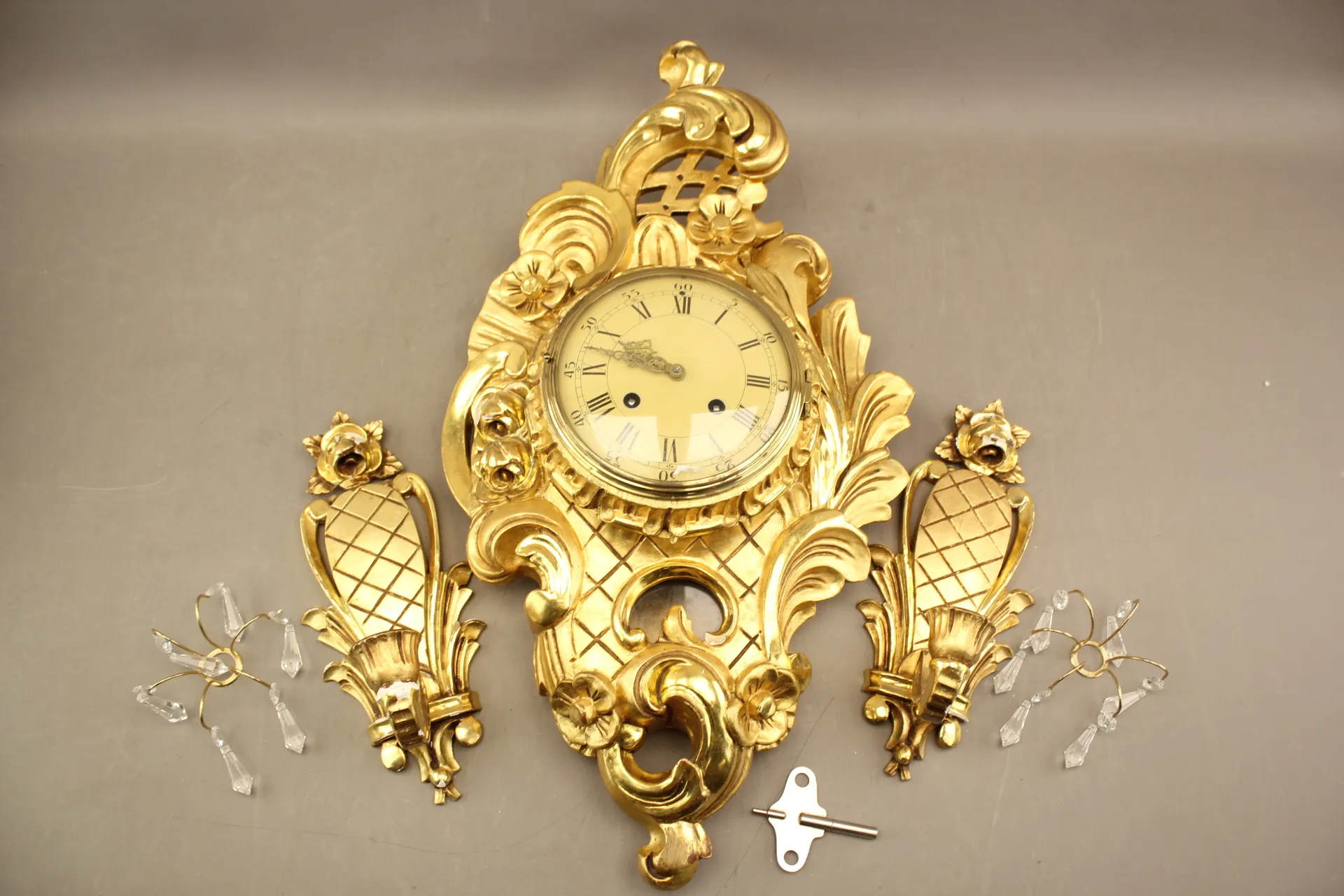 394. Förgylld pendyl och väggljusstakar 1 par