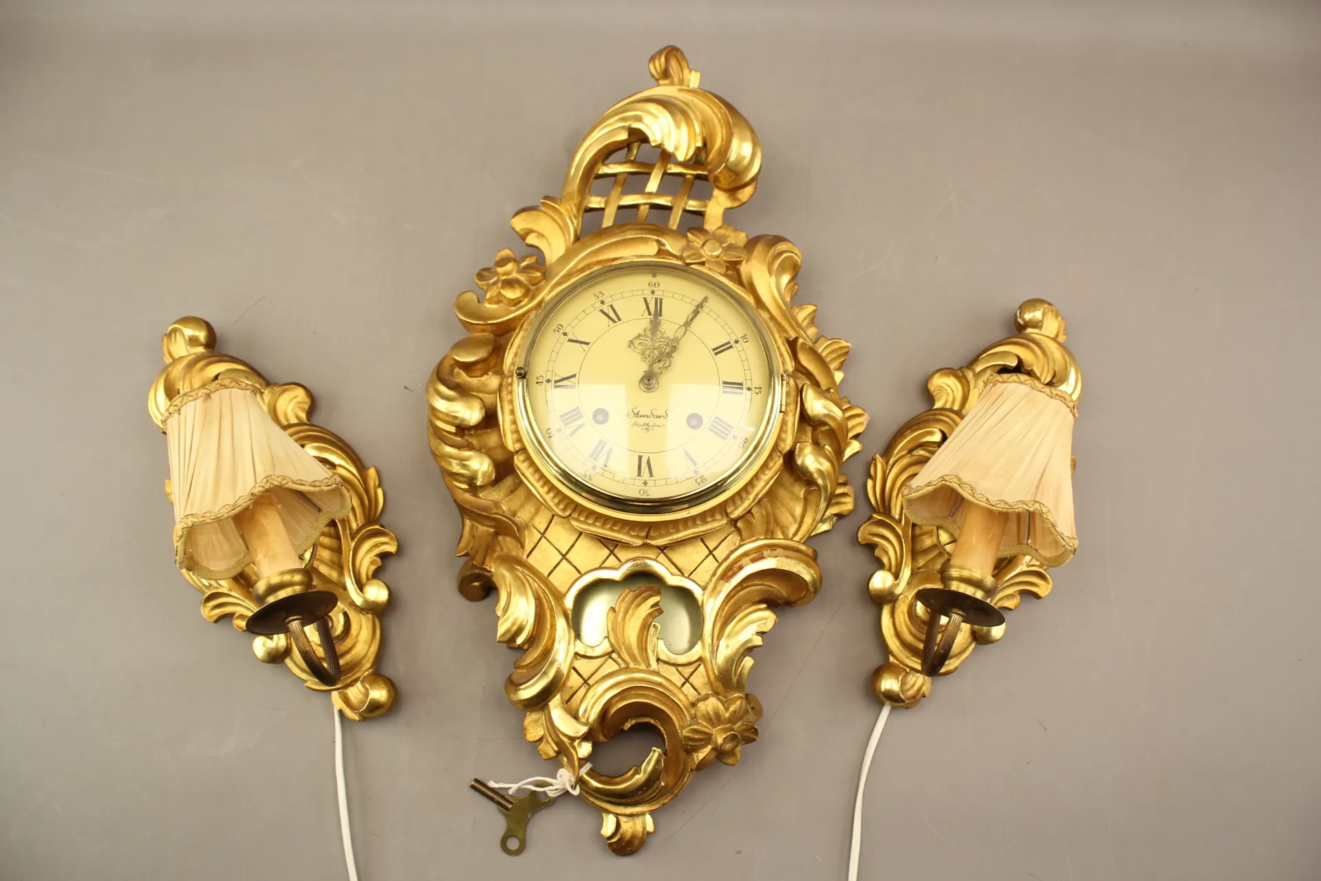 153. Förgylld pendyl Standard Stockholm och vägglampetter 2 st
