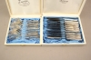 Gafflar 12 st vikt: 289,5 g, knivar 12 st vikt: 390,1 g, vägda med rostfria blad, totalvikt: 679,6 g