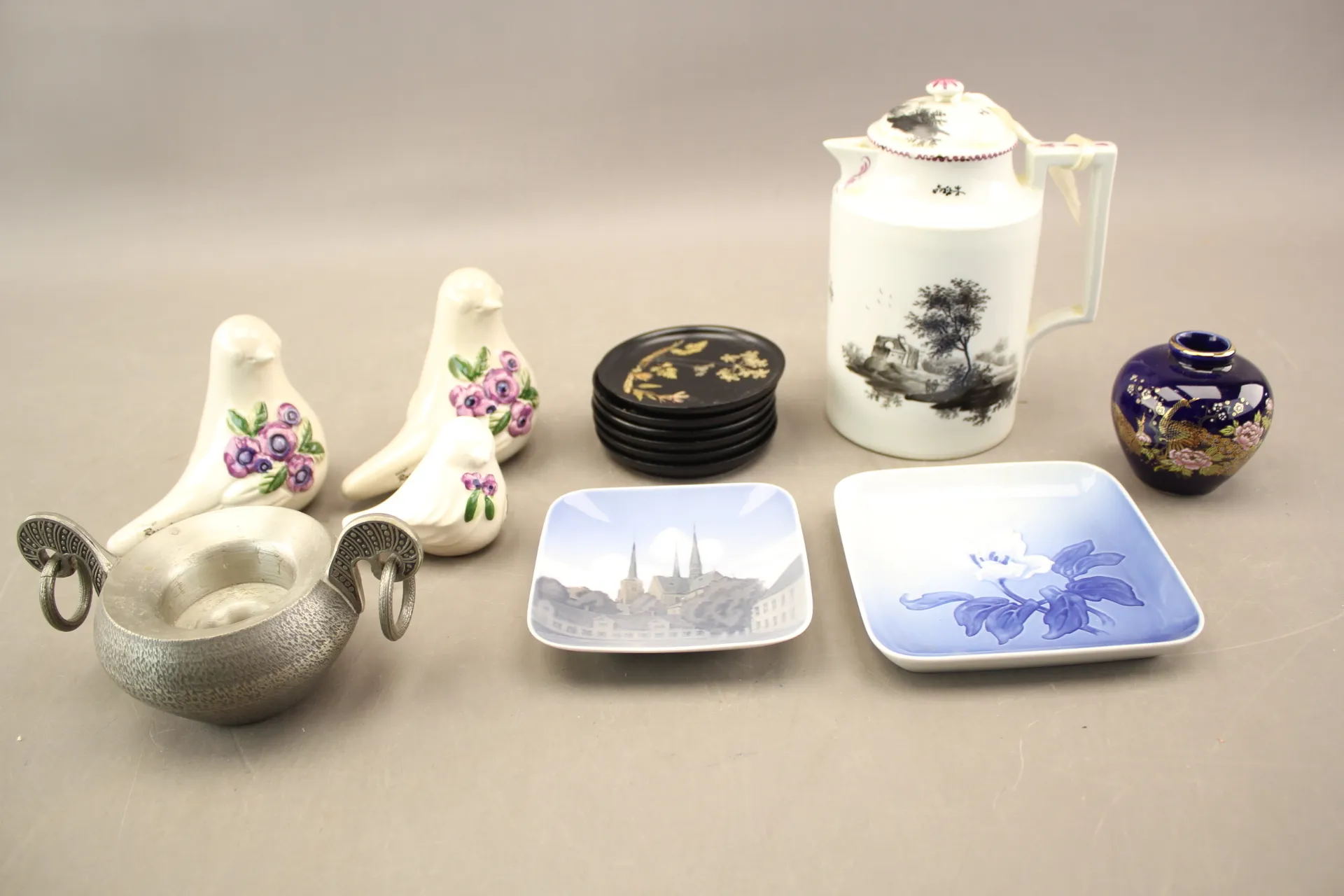 334. Fat 2 st, figuriner 3 st, kanna, mm bla Royal Copenhagen