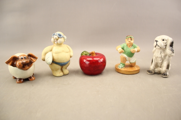 80. Figuriner 4 st och keramik äpple bla Bruka design