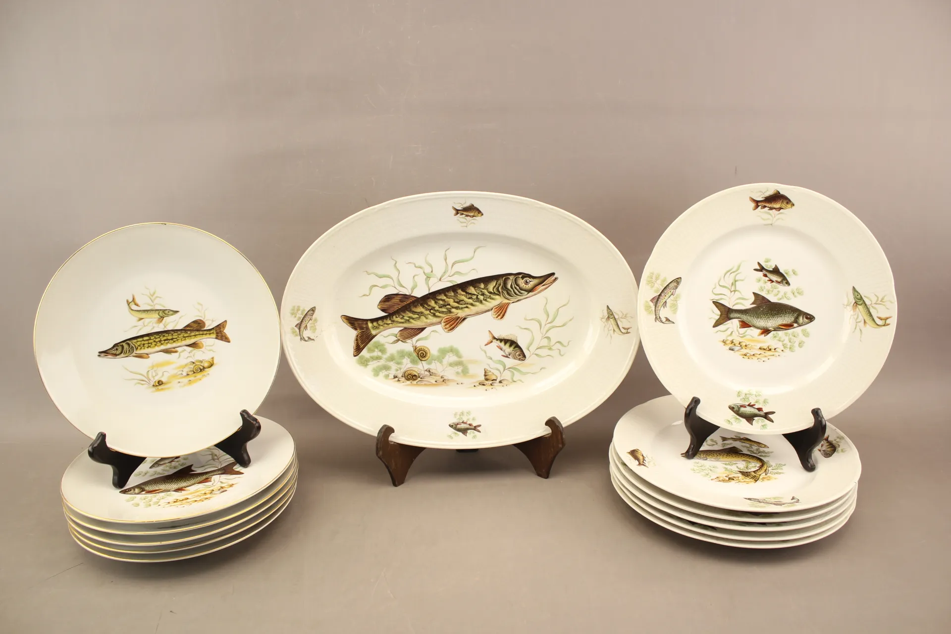 499. Fisktallrikar 6 + 6 st och fat bla Bavaria