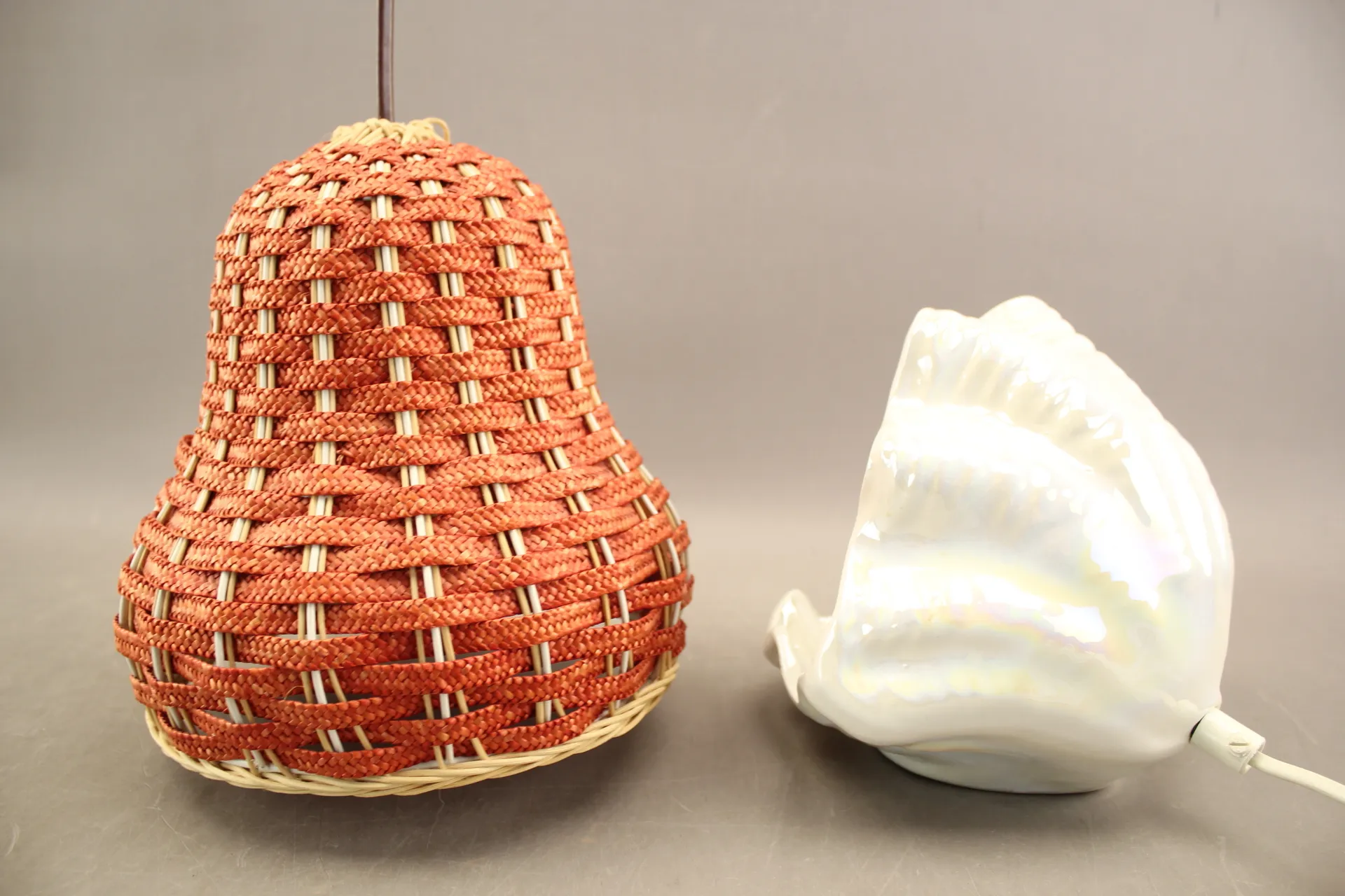 14. Flätad taklampa och vägglampa i porslin