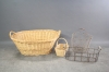 464. Flätade korgar 2 st och korgar i metall 2 st