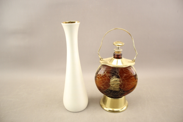 155. Flaska med speldosa och vas Finland signerad