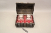 280. Flaskor och glas i schatull