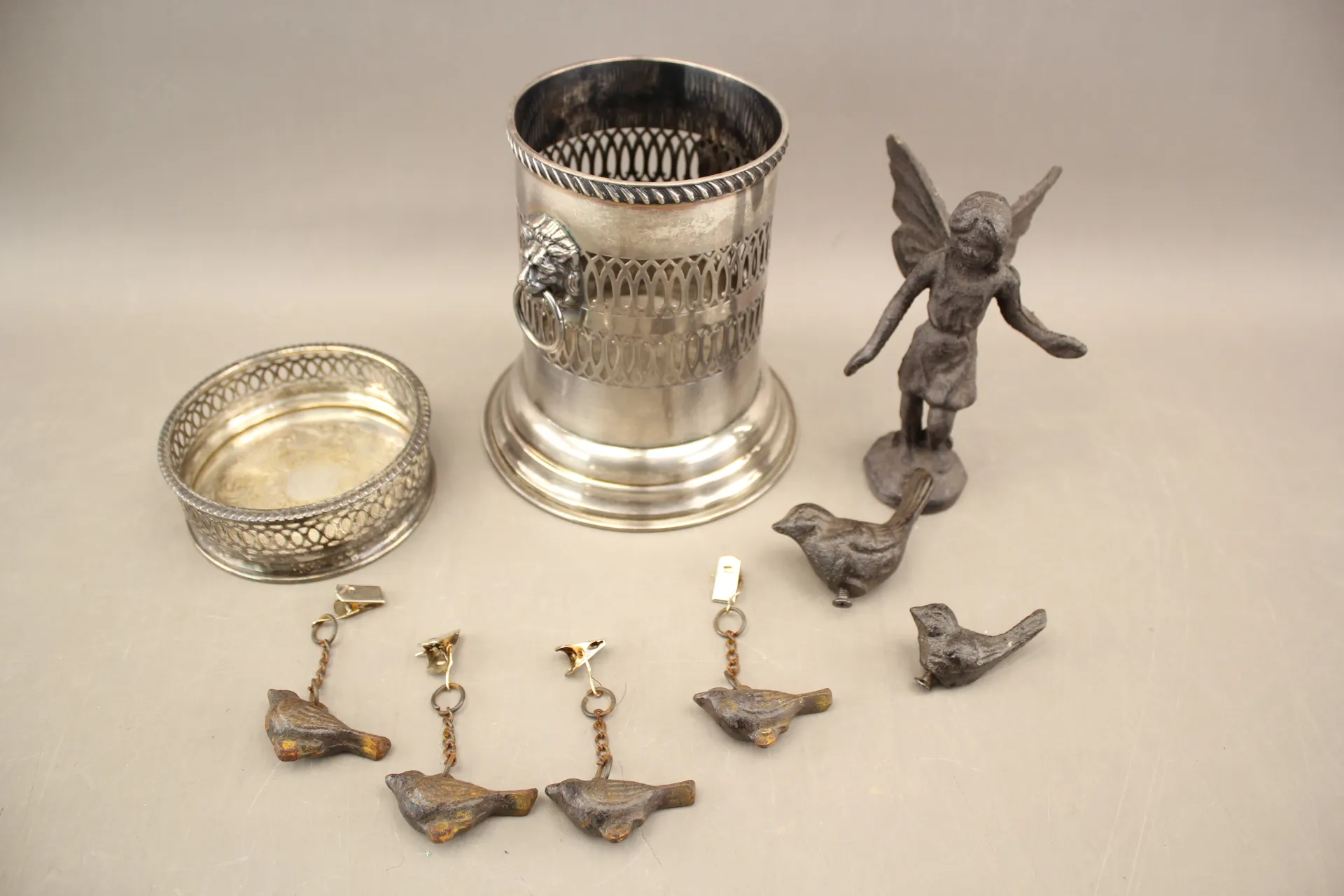 270. Flaskställ, skulptur mm