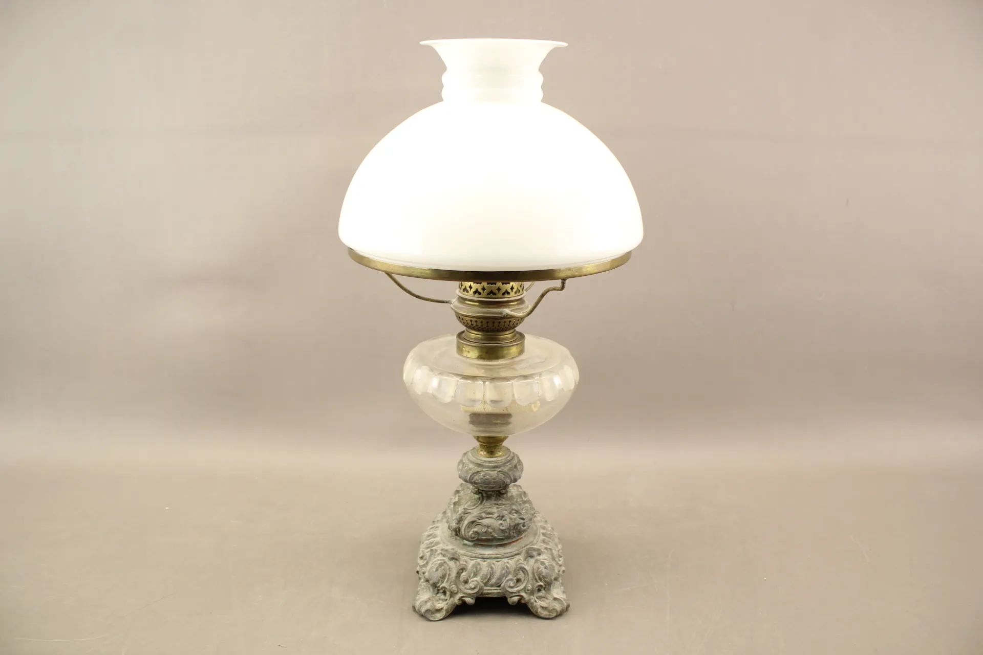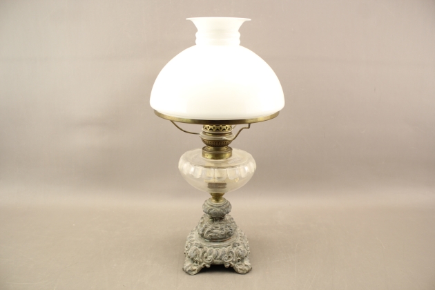 121. Fotogenlampa i glas och metall