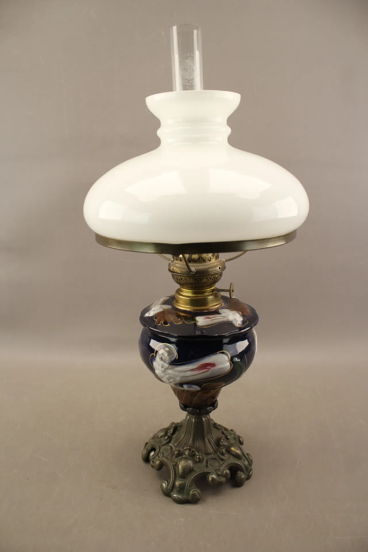 4. Fotogenlampa i majolika, glas och metall 1900-tal
