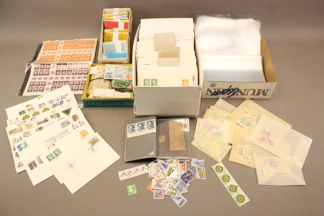 374. Frimärkssamling, förstadagsbrev och plastfickor