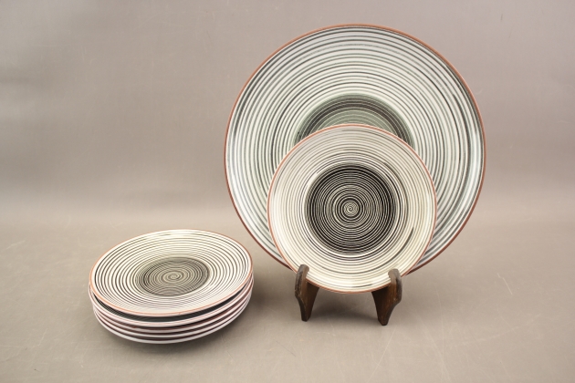 133. Fruktfat och assietter 6 st Hjördis Oldfors Ekeby