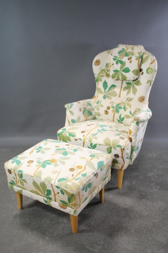 264. Fåtölj med fotpall "Farmor" Carl Malmsten OH Sjögren Tranås
