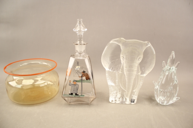 144. Glaskonst 2 st, karaff och skål bla Mats Jonasson