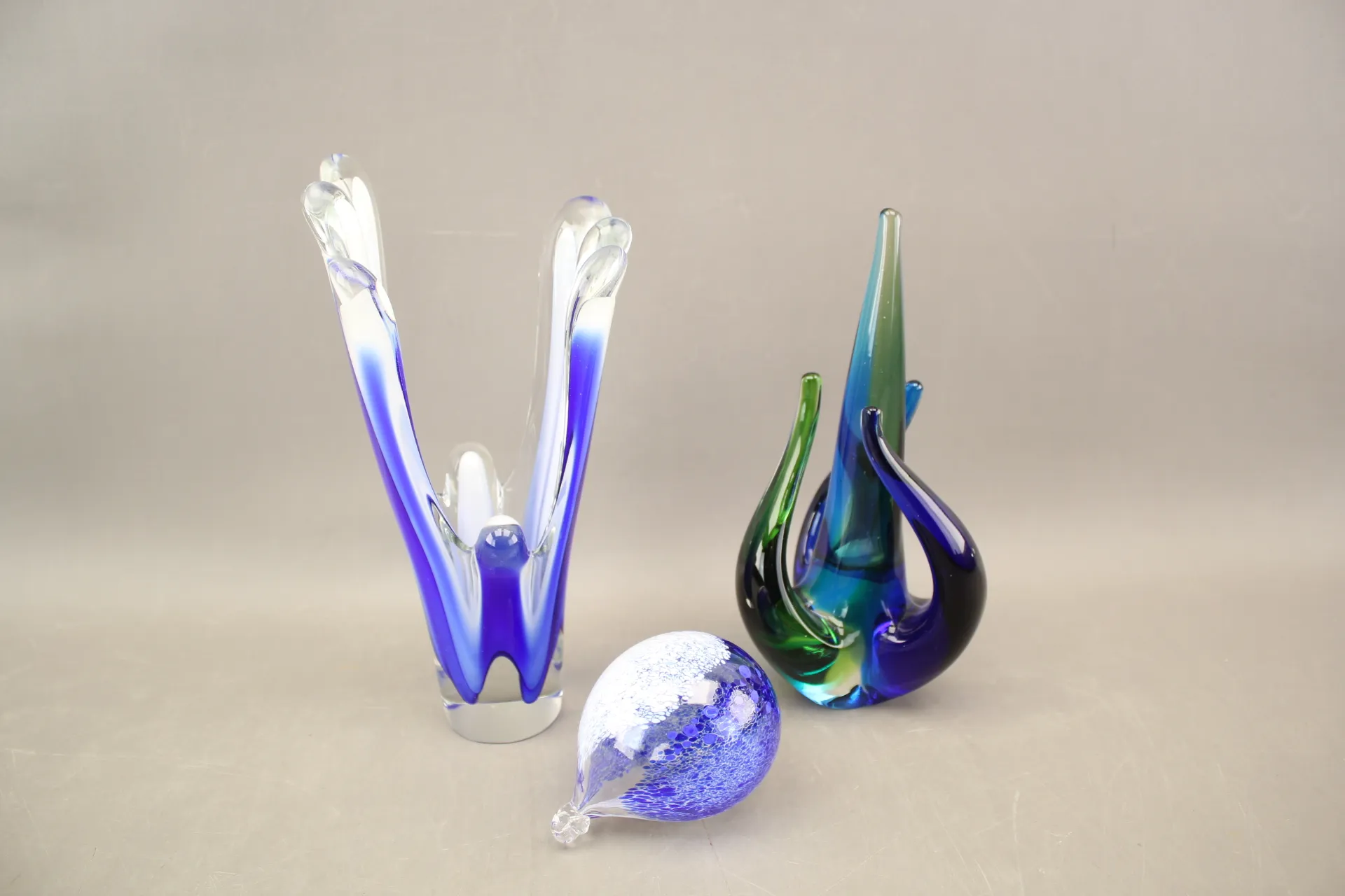 257. Glaskonst 3 delar bla Flygsfors "Coquille" Paul Kedelv