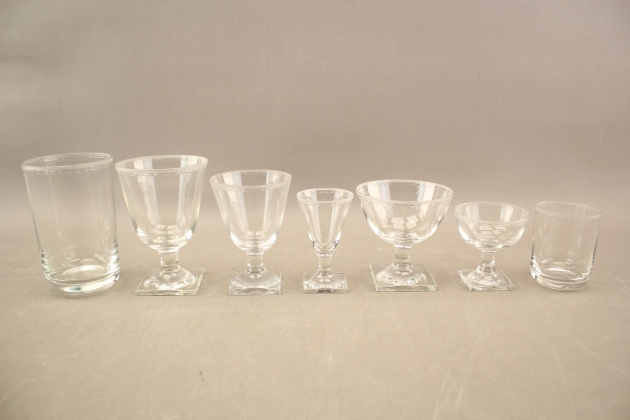 Grogglas 6 st, ölglas 15 st, vitvinsglas 16 st, rödvinsglas 15 st, snapsglas 13 st, selterglas 15 st, likörglas 15 st
