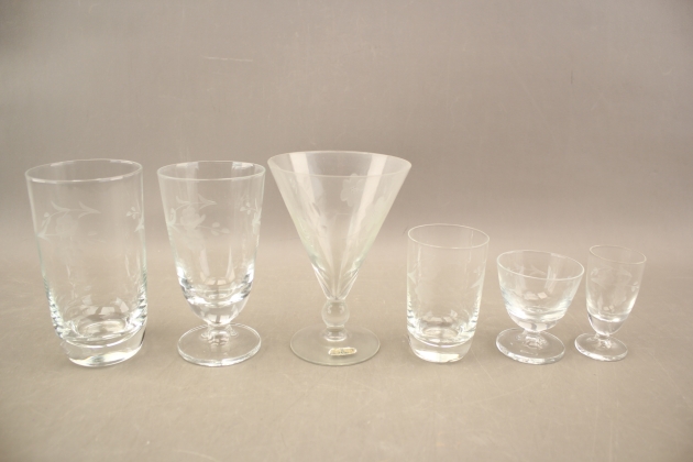 143. Glasservis med slipad dekor Karlskoga glasbruk 1900-tal 50 delar