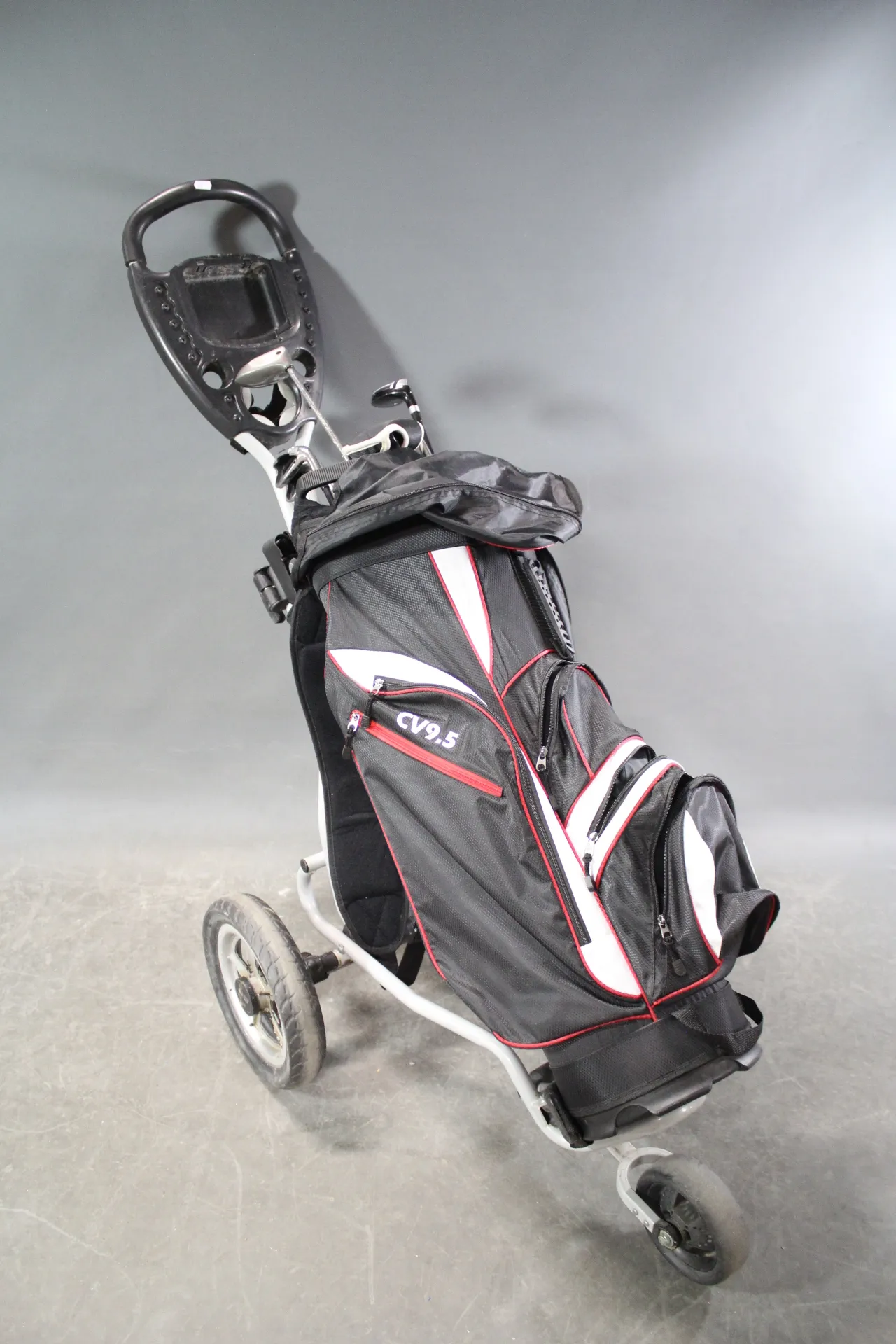 259. Golfbag med klubbor 9 st bla Callaway och vagn