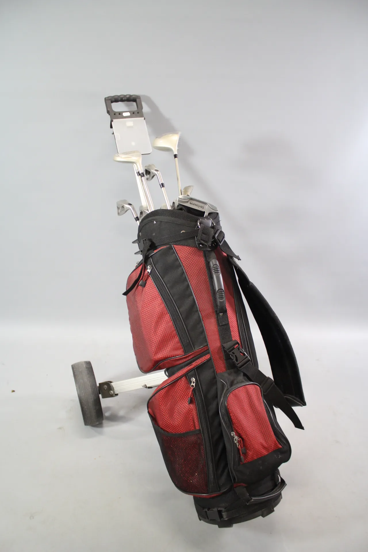 43. Golfbag, vagn och klubbor 11 st Oncourse