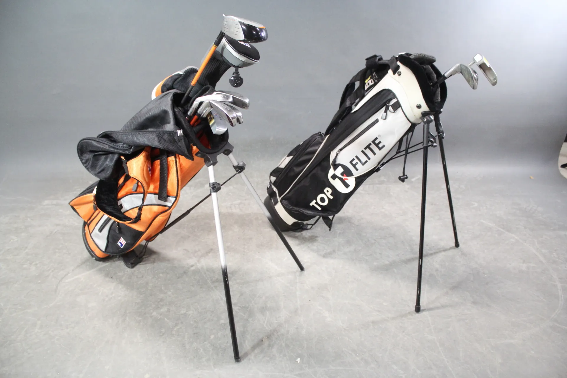 266. Golfbagar 2 st och klubbor 9 st barnmodell bla Four-D