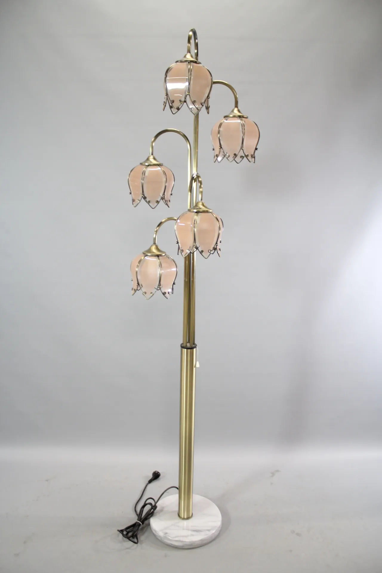 46. Golvlampa Tulpan guldmetall, glas på marmorfot