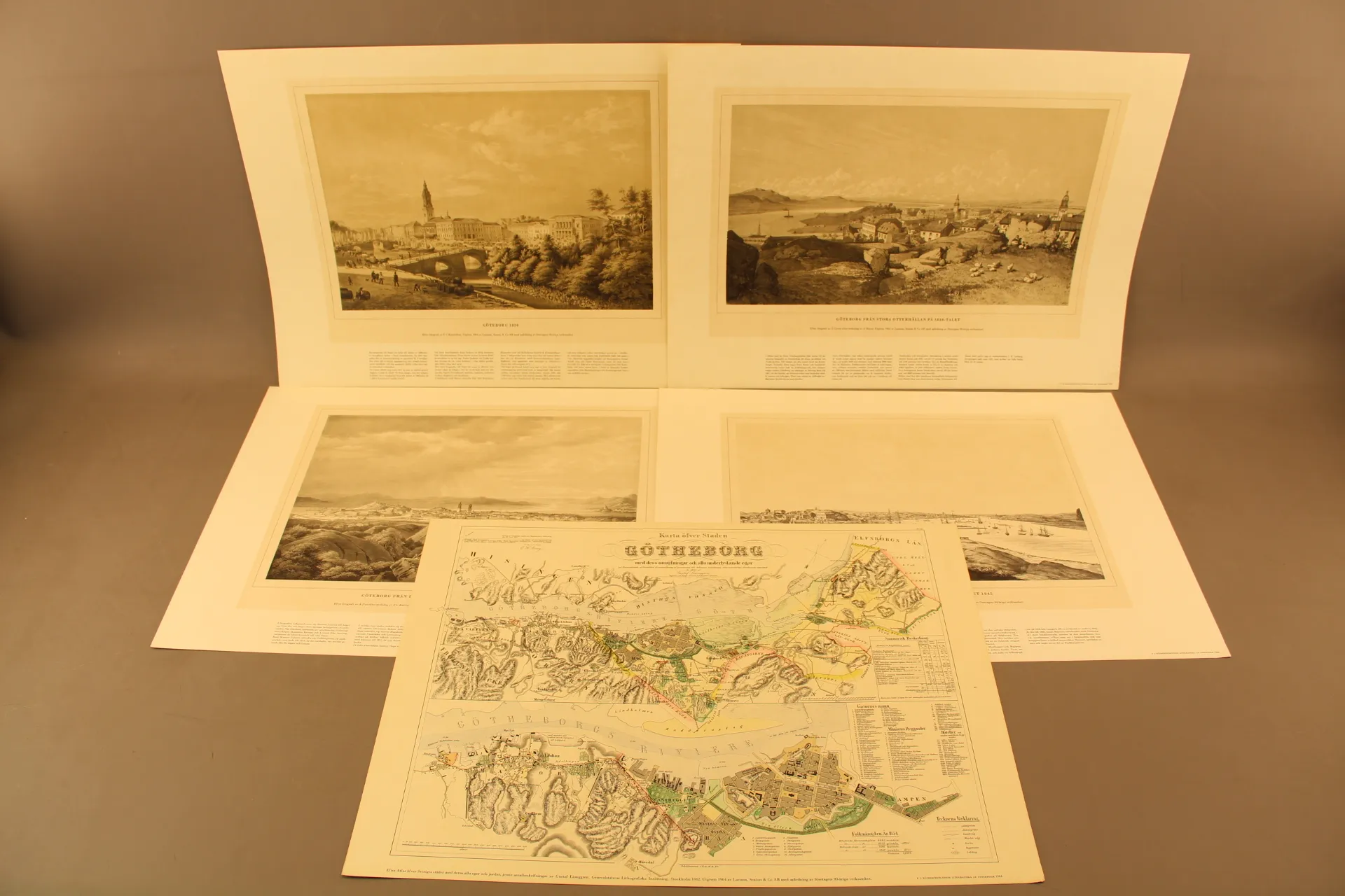 365. Grafiska blad 4 st och karta "Göteborg" 1800-tal