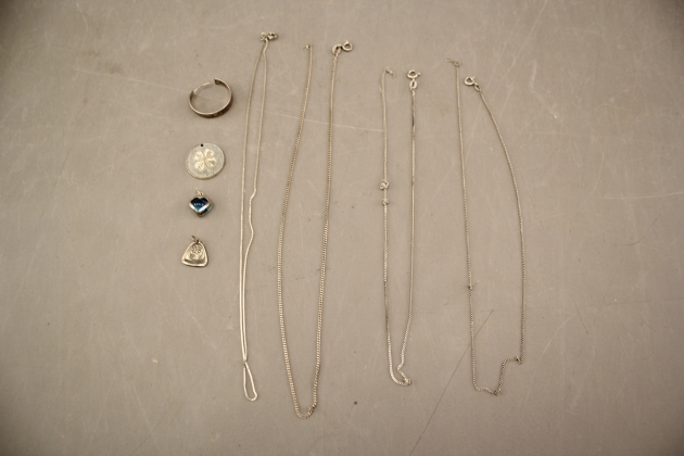 89. Halsband 4 st, hängen 3 st och örhänge i silver