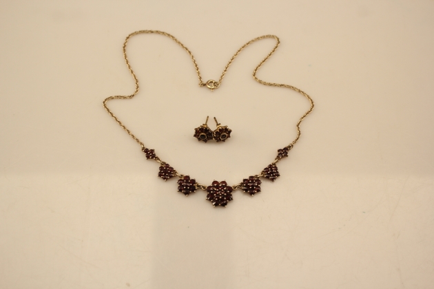 116. Halsband och örhängen med granater i silver 1 par