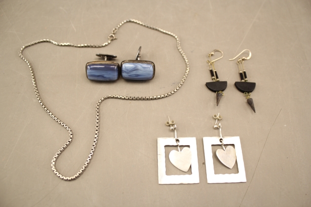 390. Halsband, örhängen 2 par och manschettknappar 1 par i silver