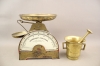 385. Hushållsvåg Jernbolaget Eskilstuna och mortel i mässing
