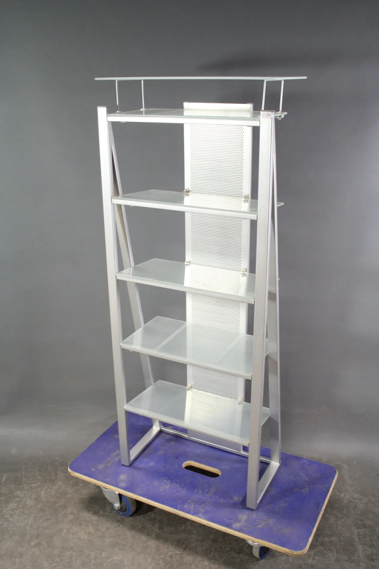 284. Hylla i metall med skivor i glas