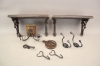 116. Hyllor 2 st, krokar, mm i trä och metall