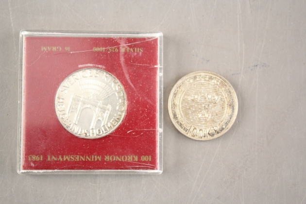 112. Jubileumsmynt i silver 100 kr, 2 st