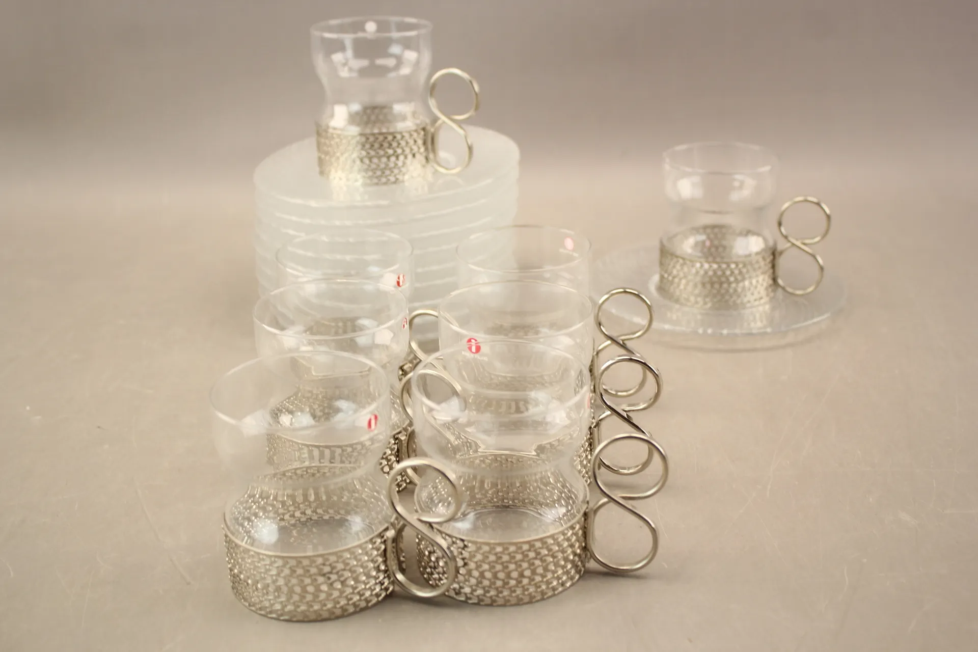 93. Kaffeglas 8 st och assietter 10 st Iittala "Tsaikka" Timo Sarpaneva