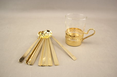 377. Kaffeglas Schott 12 st och skedar 12 st