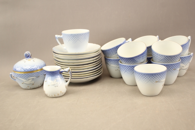 Koppar 12 st, fat 12 st, sockerskål och gräddkanna