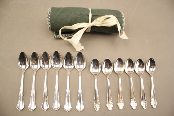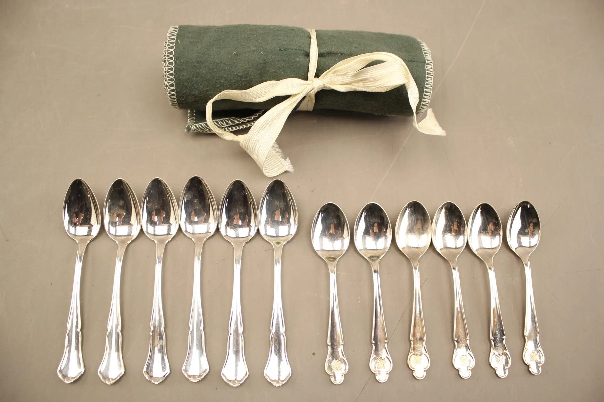 188. Kaffeskedar 6 st och moccaskedar 6 st i silver med bestickfodral