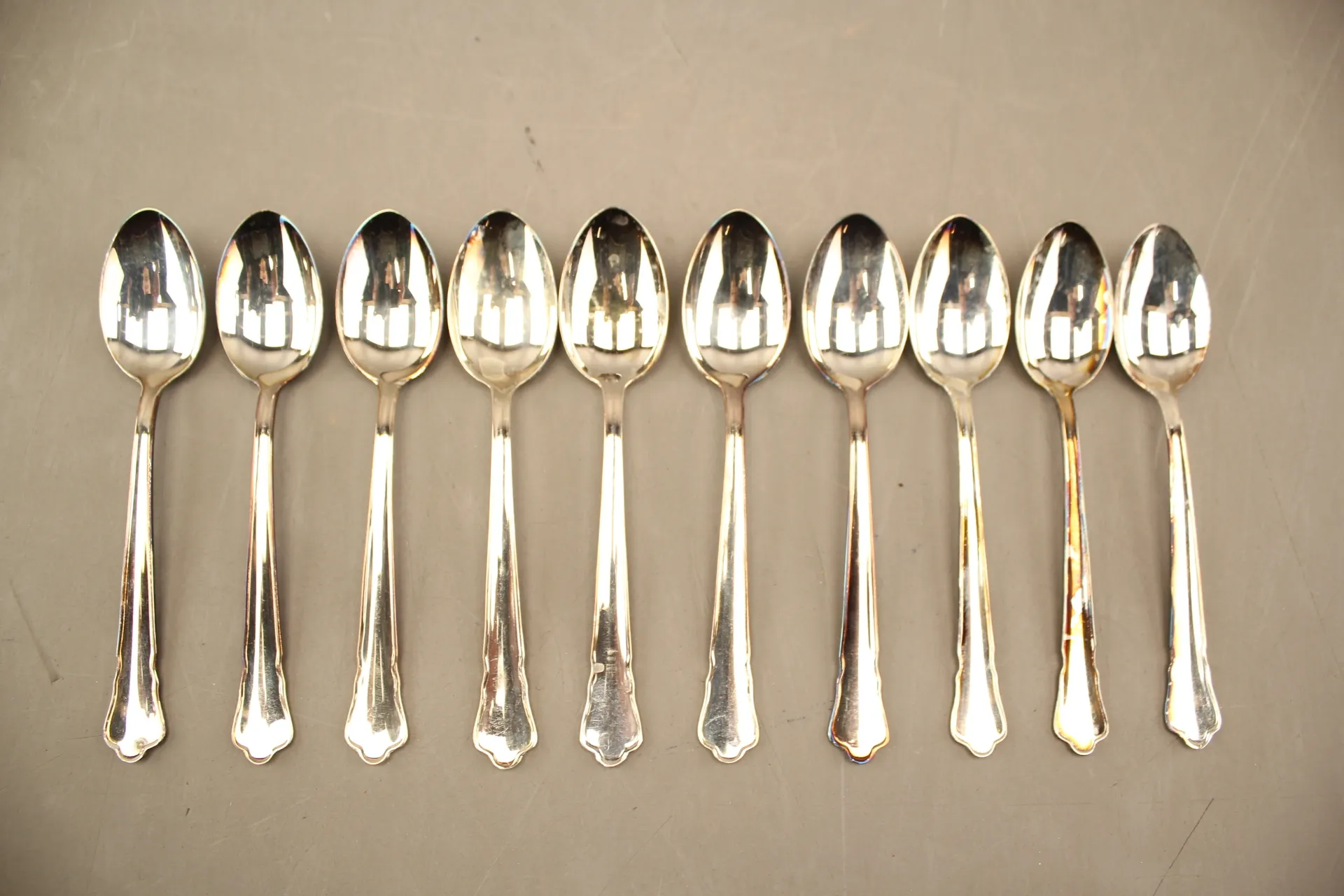 163. Kaffeskedar "Chippendale" i silver 10 st