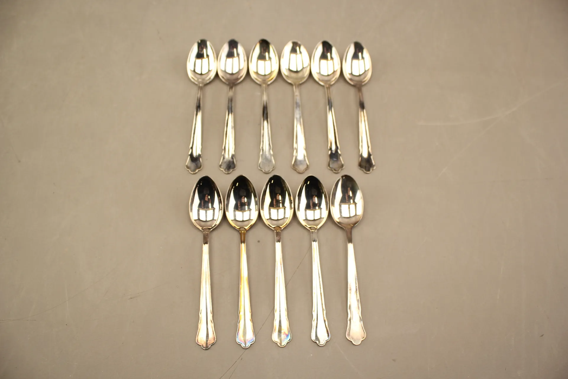 148. Kaffeskedar "Chippendale" i silver 11 st