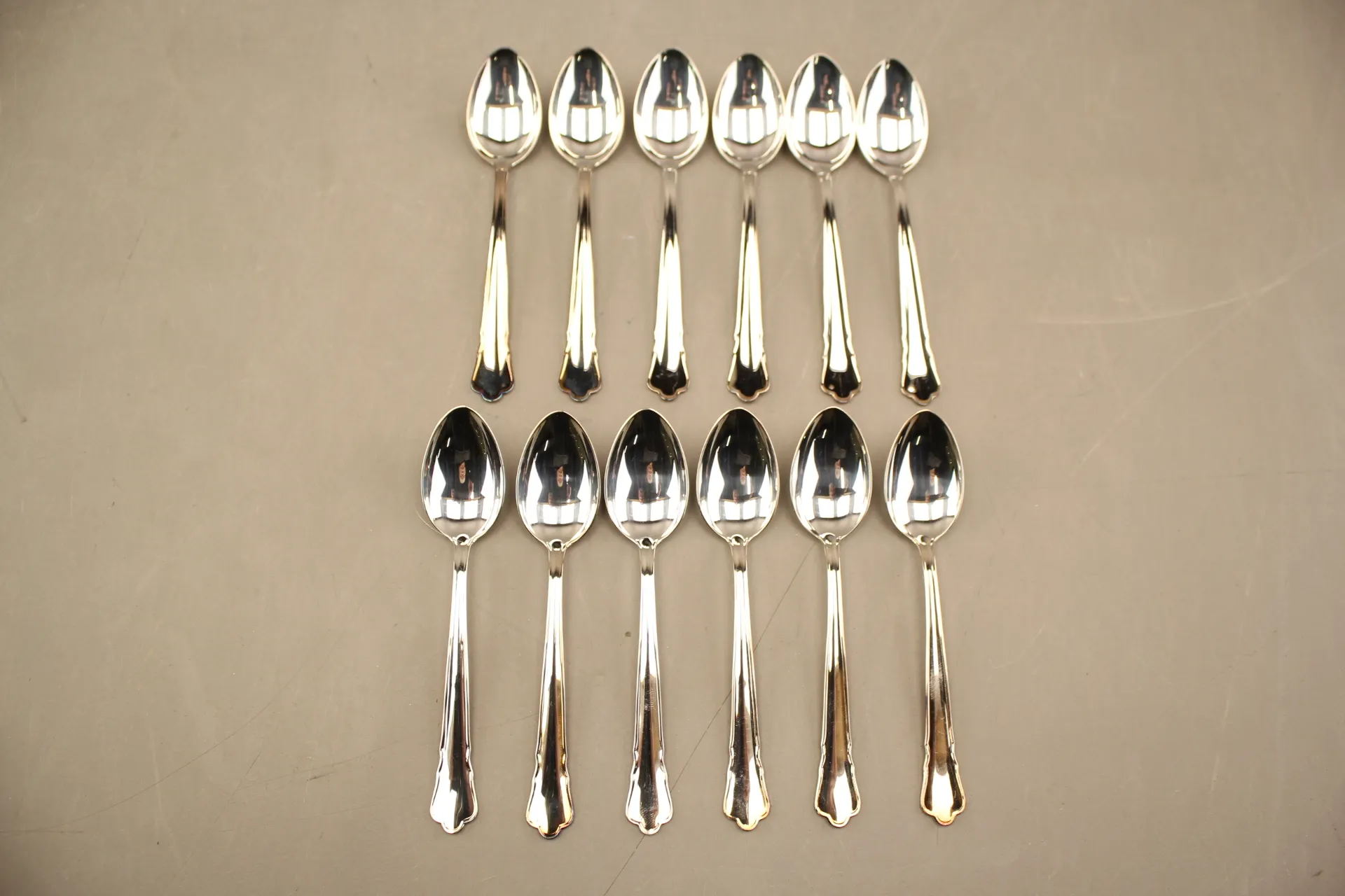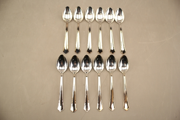 140. Kaffeskedar "Chippendale" i silver 12 st