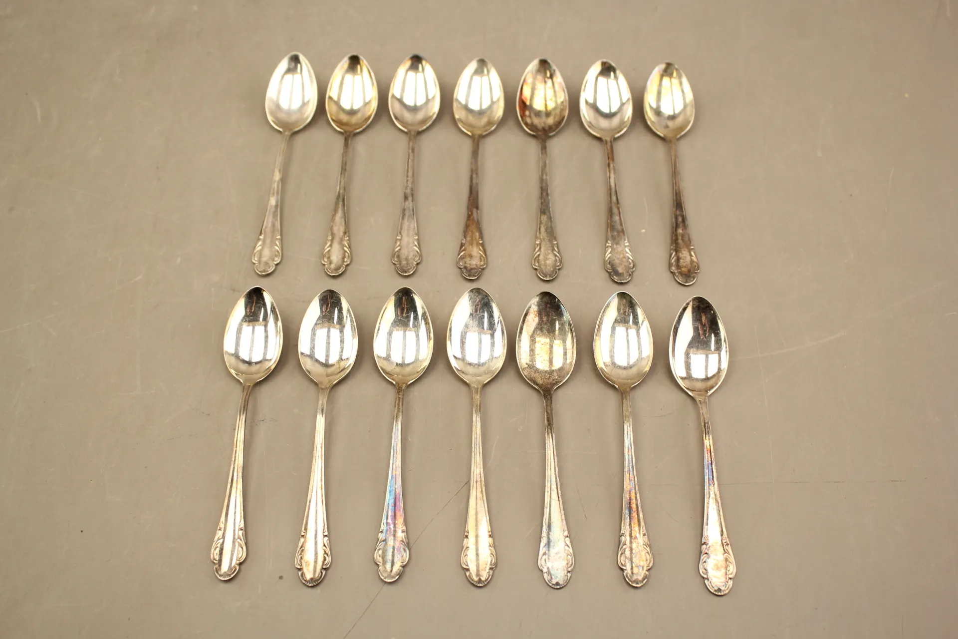 126. Kaffeskedar "Haga" i silver 14 st