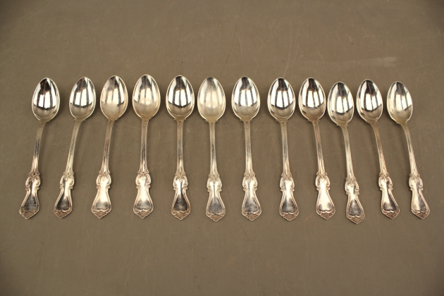 216. Kaffeskedar i silver 12 st