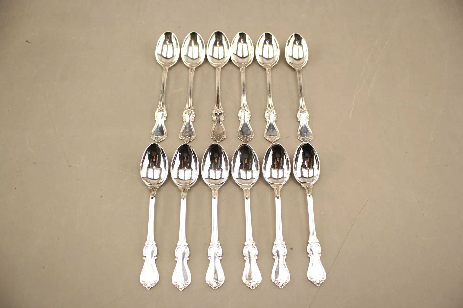 192. Kaffeskedar i silver "Olga" 12 st
