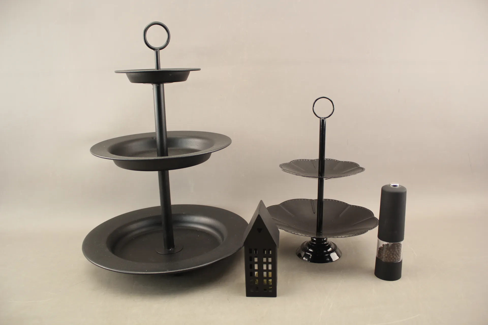 379. Kakfat 2 st, pepparkvarn och ljuslykta i metall