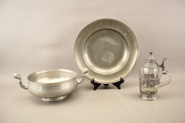 252. Kallskål 17-1800-tal, fat och stop i tenn