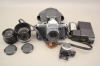 447. Kamera, objektiv 2 st, blixt, mm bla Pentax