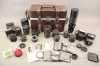 220. Kameraobjektiv 8 st och blixt bla Canon och Makinon