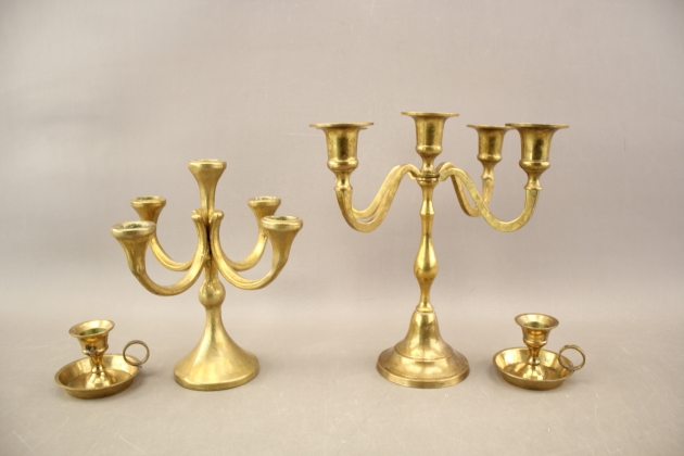 187. Kandelabrar 2 st och ljusstakar 1 par i mässing