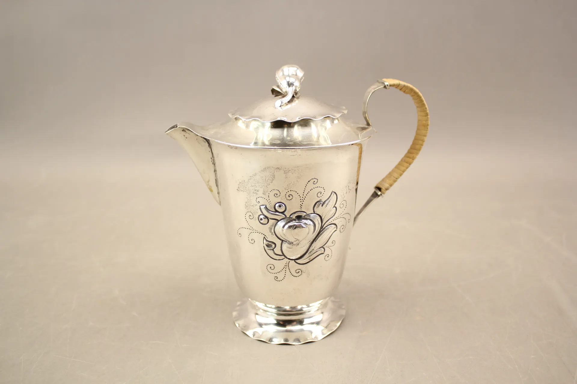 202. Kanna i silver märkt OLO