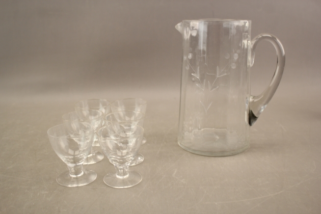 26. Kanna och glas 6 st med slipad dekor